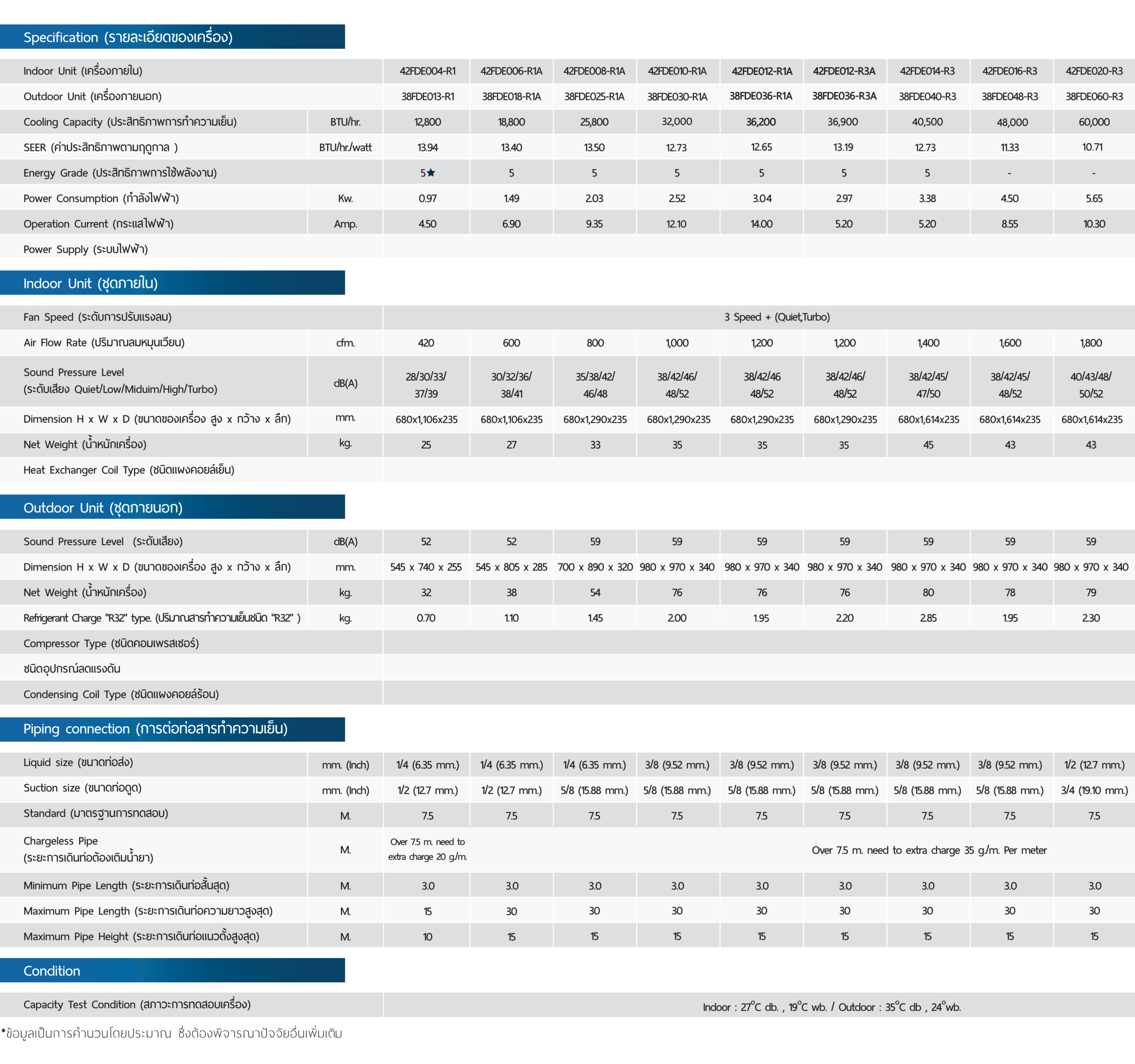 ข้อมูล BTU ประสิทธิภาพการประหยัดไฟ-ขนาดตัวเครื่อง