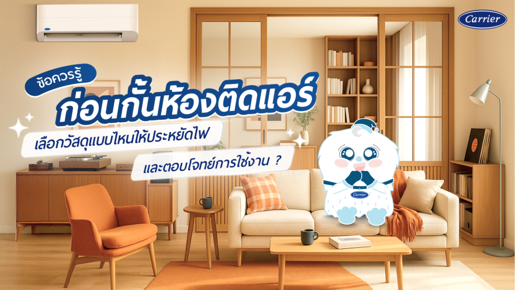 เชื่อว่าทุกวันนี้หลายบ้านเลือกที่จะกั้นห้องติดแอร์ให้เป็นสัดส่วนแทนการทุบแล้วขยายเพื่อสร้างห้องขึ้นมาใหม่แทน ไม่ว่าจะเป็นการทำห้องนอนเพิ่ม กั้นห้องทำงาน หรือกั้นห้องใหม่ให้ลูกหรือหลานที่เพิ่งเกิดใหม่ และคำถามที่ตามมาก็คือวัสดุชนิดใดกั้นห้องแล้วช่วยประหยัดไฟได้? เราควรเลือกกั้นห้องติดแอร์แบบไหนดี? เพราะการกั้นห้องไม่ใช่แค่กั้นขึ้นมาแค่ใช้งานอย่างเดียว แต่ยังต้องคำนึงถึงการรักษาอุณหภูมิภายในห้องและค่าไฟฟ้าในแต่ละเดือนที่เพิ่มขึ้นมาด้วย และในบทความนี้เราจะมาดูว่าเราควรใช้วัสดุแบบไหนกั้นห้อง ติดแอร์ และคำแนะนำเลือกแอร์เพื่อประหยัดไฟ ข้อดีของการกั้นห้อง ติดแอร์ วัสดุที่ใช้ในการกั้นห้องสำหรับกันแอร์ 1. ผนังยิปซัม (Gypsum Board) ข้อดี: ข้อเสีย: 2. ผนังไม้หรือผนังไม้เทียม ข้อดี: ข้อเสีย: 3. กระจกใสหรือกระจกฝ้า ข้อดี: ข้อเสีย: 4. บานเลื่อน UPVC หรืออะลูมิเนียม ข้อดี: ข้อเสีย: 5. ผ้าม่านกันแอร์ (Curtain Partition) ข้อดี: ข้อเสีย: แคเรียร์แนะนำแอร์ เย็นเร็ว ประหยัดไฟ เมื่อตัดสินใจได้แล้วว่าจะเลืออกกั้นห้องด้วยวัสดุอะไร การเลือกแอร์ให้เหมาะสมต่อการใช้งานก็มีความสำคัญมากไม้แพ้กัน แอร์แคเรียร์ (Carrier) ยี่ห้อได้มาตรฐานและมีความเชี่ยวชาญในระดับโลก มีรุ่นให้เลือกมากมายตอบโจทย์ต่อการใช้งานที่ต่างกันไป เช่น Carrier XInverter Plus Carrier รุ่น […]