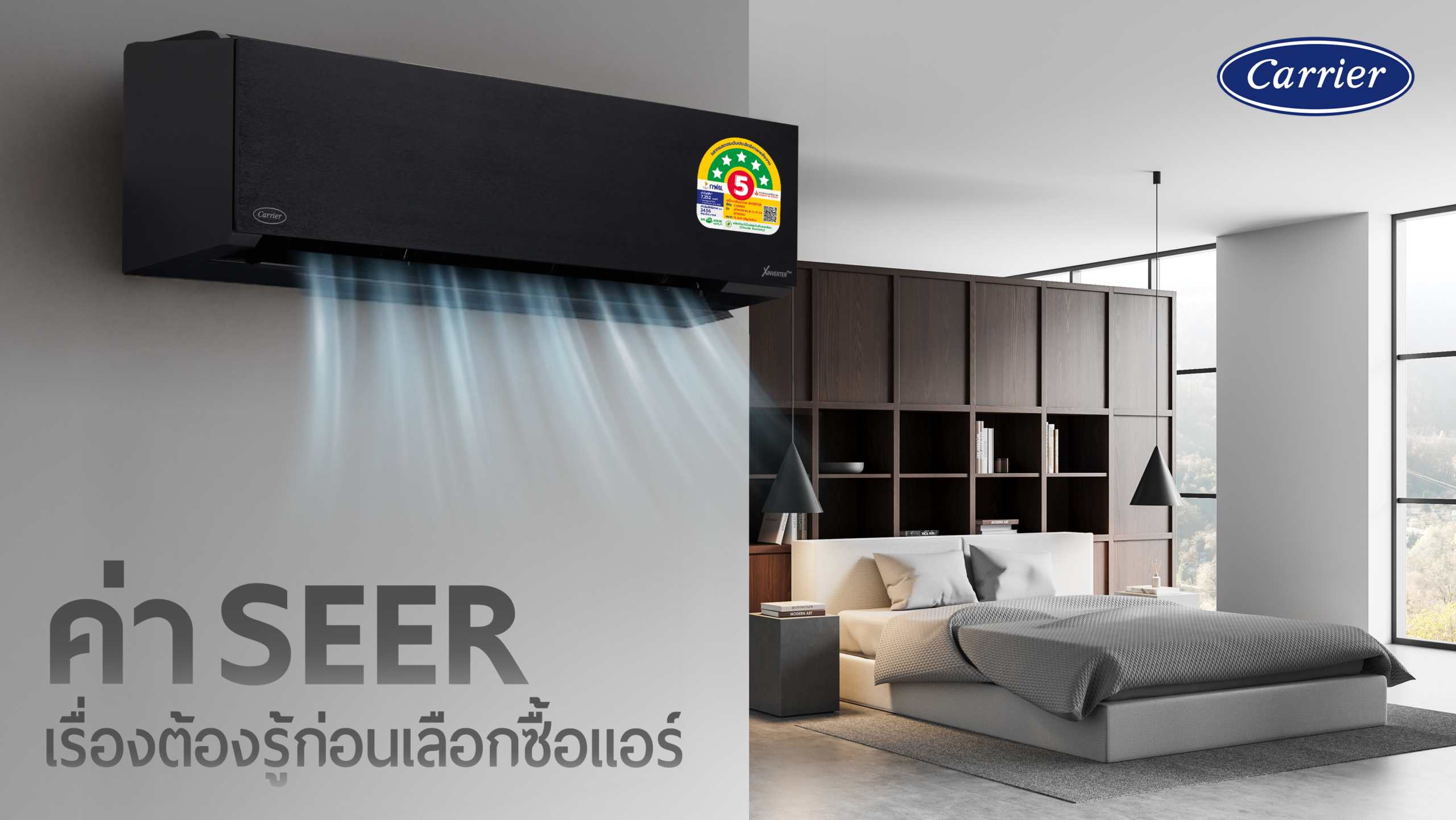 - แอร์แคเรียร์ XInverter Plus มาพร้อมฉลากไฟเบอร์ 5 สูงสุด 5 ดาว ค่า SEER สูงสุด 24.56 การันตีเรื่องประหยัดพลังงาน